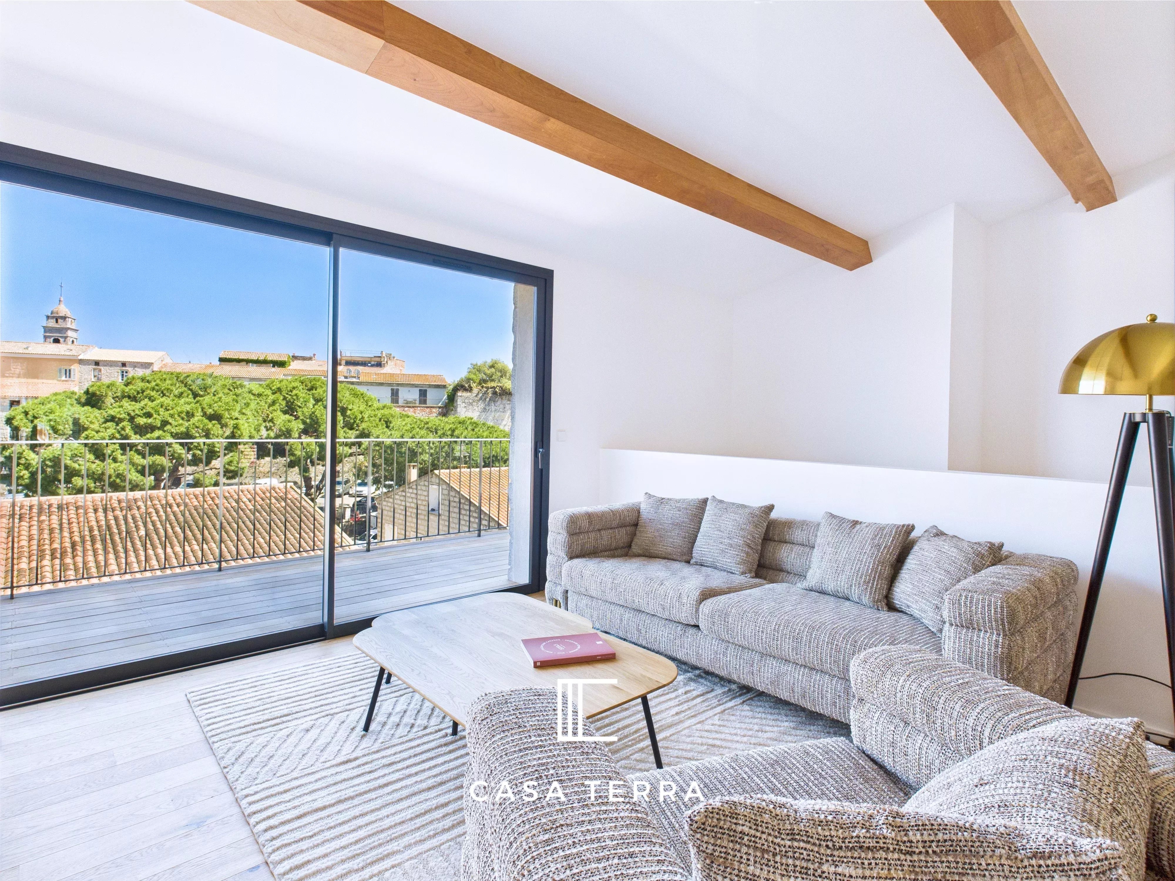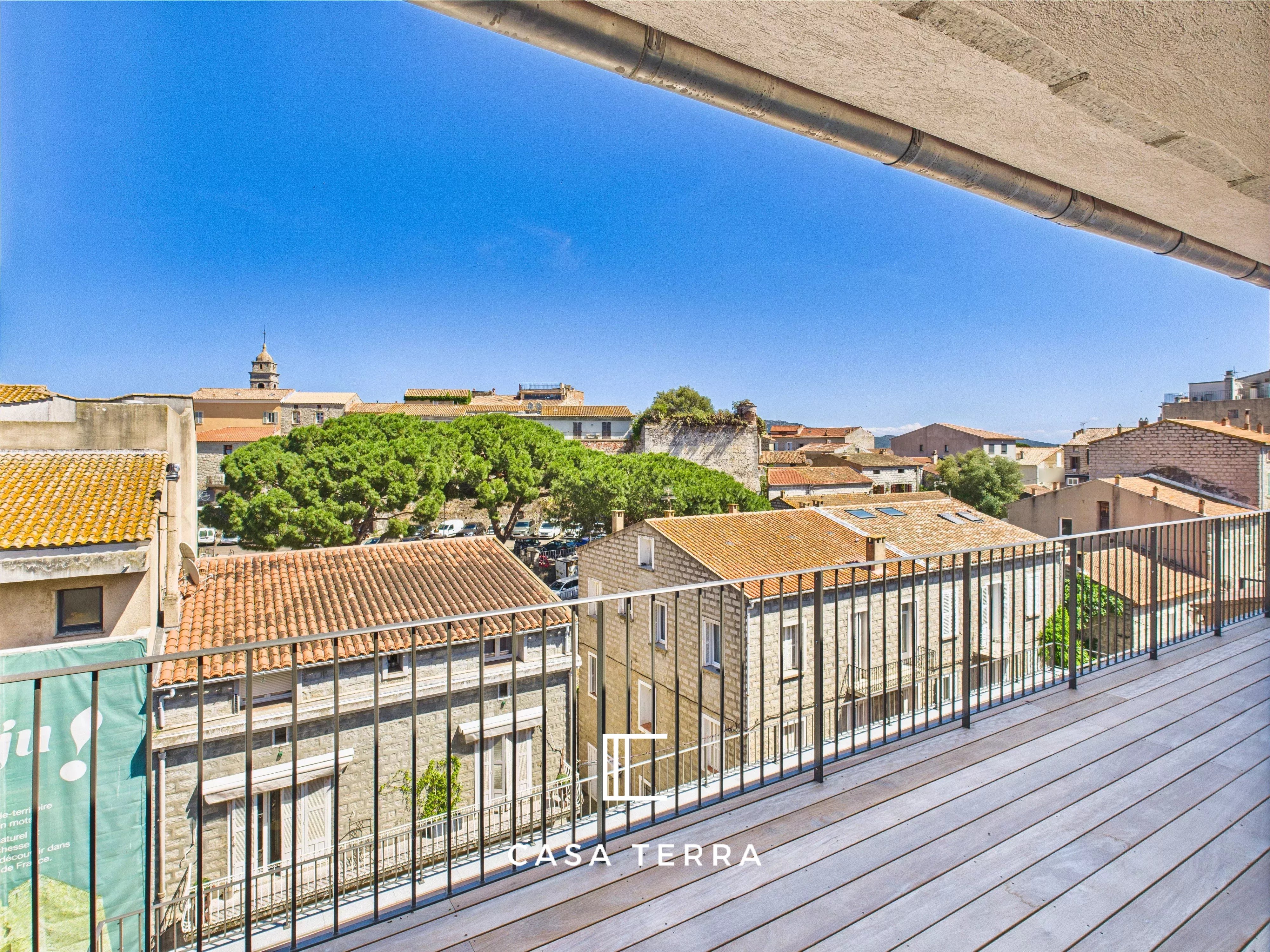 This loft-like penthouse boasts high ceilings in the 52 m² living room, which flows from east to west to let in plenty of light throughout the day, culminating in a splendid view over the Porto-Vecchio golf course and the ramparts of the citadel.